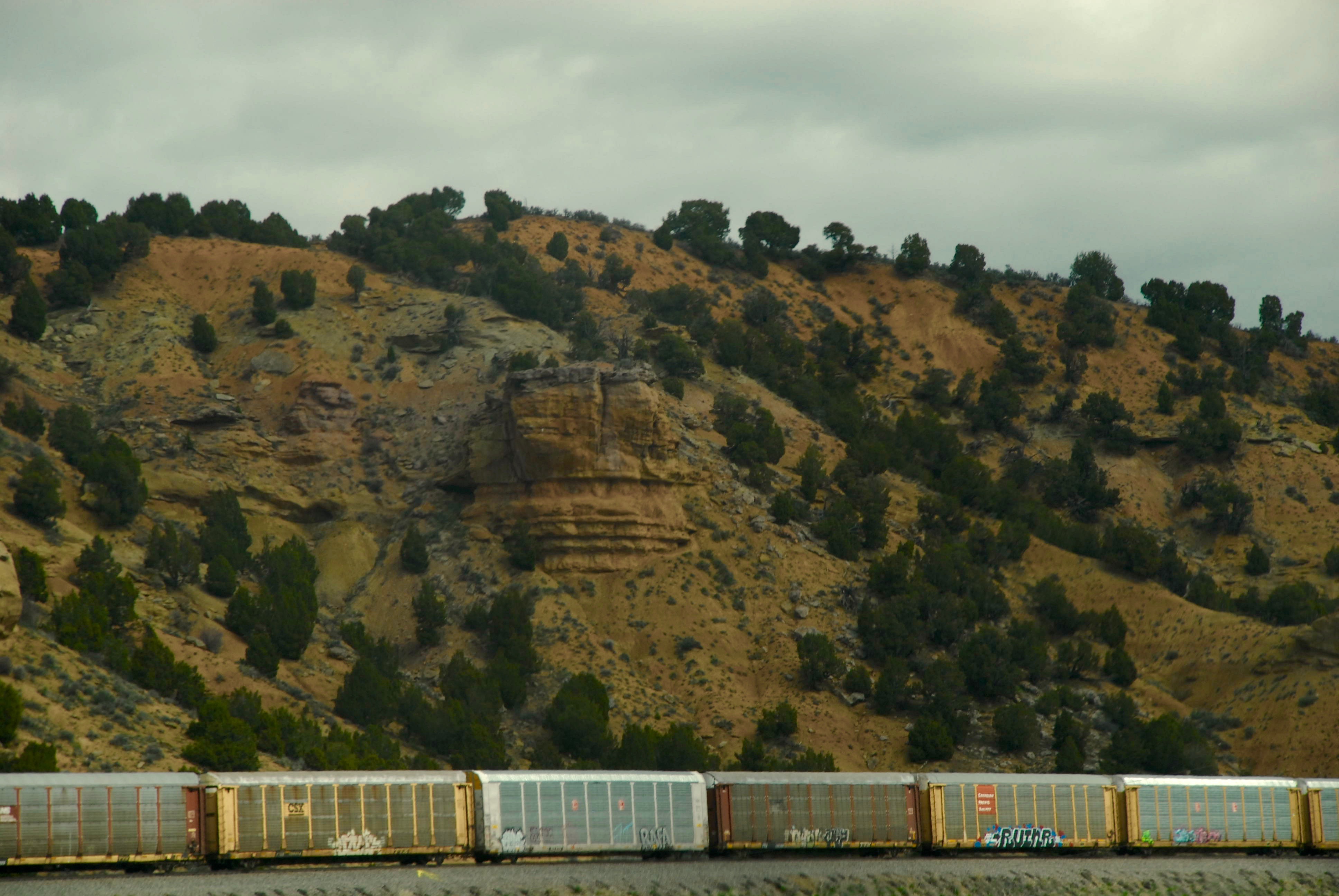 My brain was totally misinformed because I thought for some silly reason, most of the largest of the mountain ranges were behind us, so I was a bit taken aback that we just kept climbing higher and higher until we were running across the tops of them in Wyoming through some snow flurries, cloud coverage and icy rain thrown in for added fun. <dripping sarcasm>
