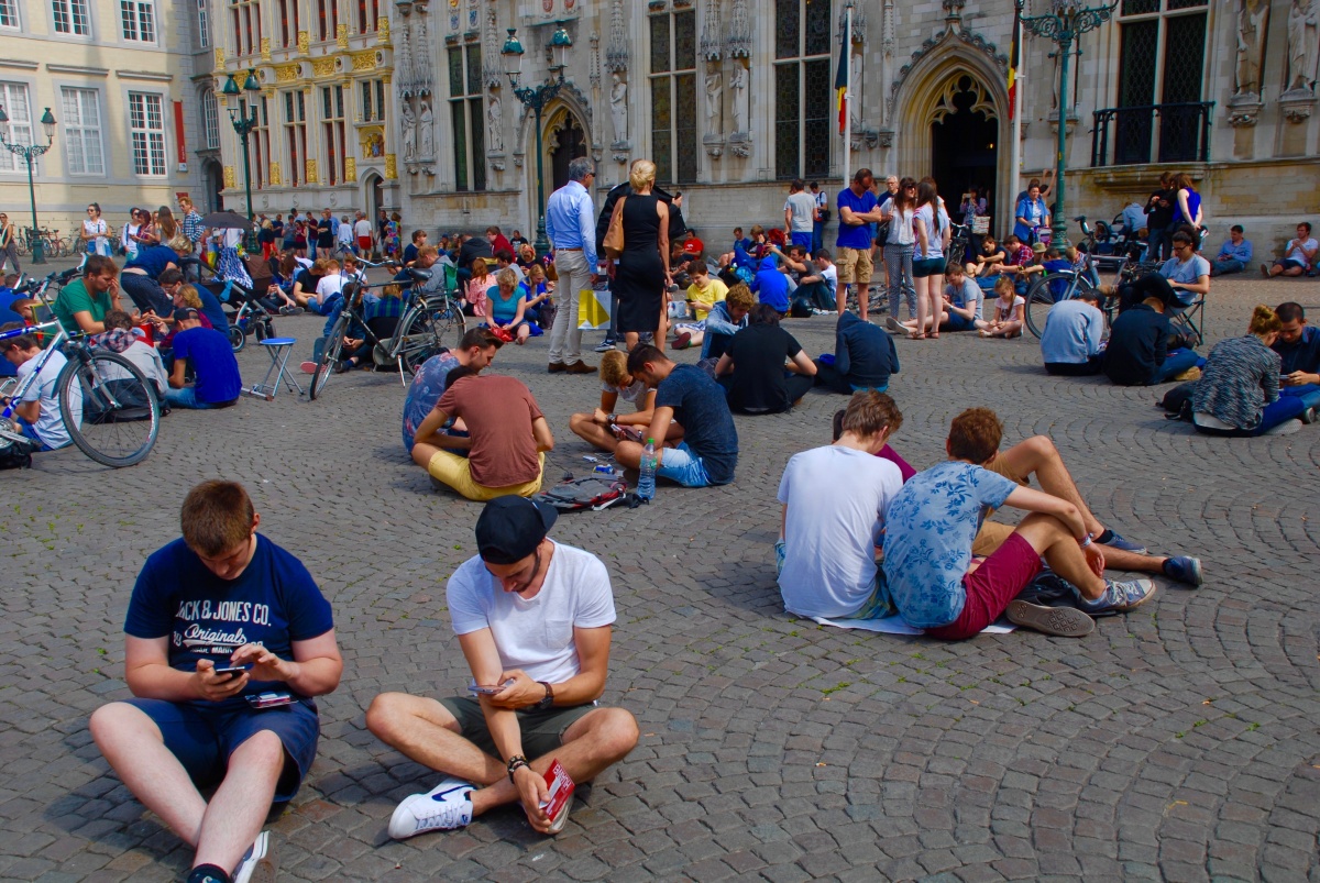 Playing Pokemon Go in Bruges