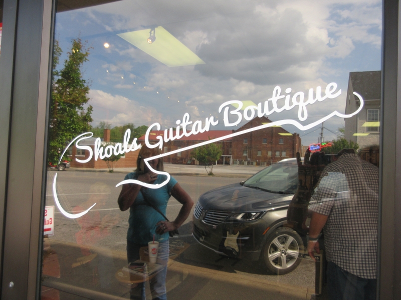 I definitely wanted to check out the kick-ass guitar store called “Shoals Guitar Boutique”. The owners, Don and Alana, are delightful and friendly (their dog even more friendly. LOL) Alana is the daughter of Jimmy Johnson, one of the original Swampers, the famous session musicians group behind so many country and southern rock songs recorded in Muscle Shoals. I couldn’t resist and bought a t-shirt for Han and even put him on the phone with them because they all have so much in common. We are already connected via Facebook and Han and I will soon be planning a trip to go visit, have dinner with them and check out the music scene. I am pretty darn excited about that.