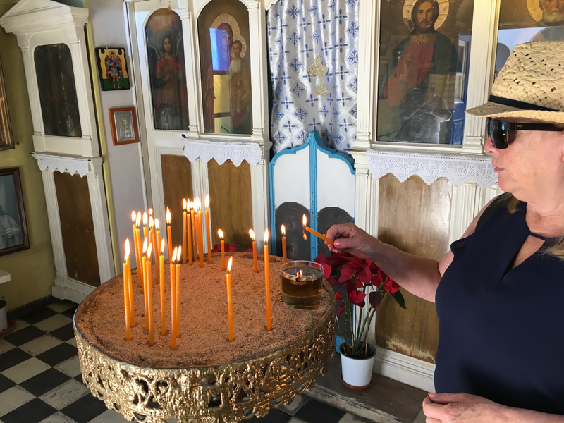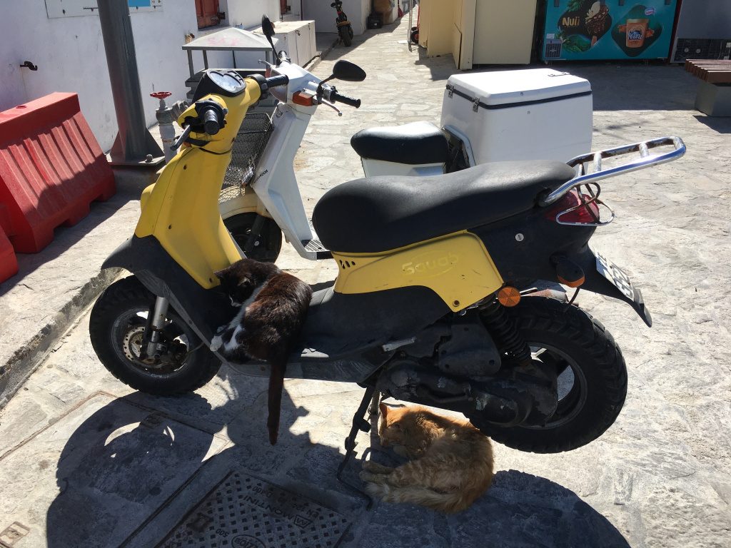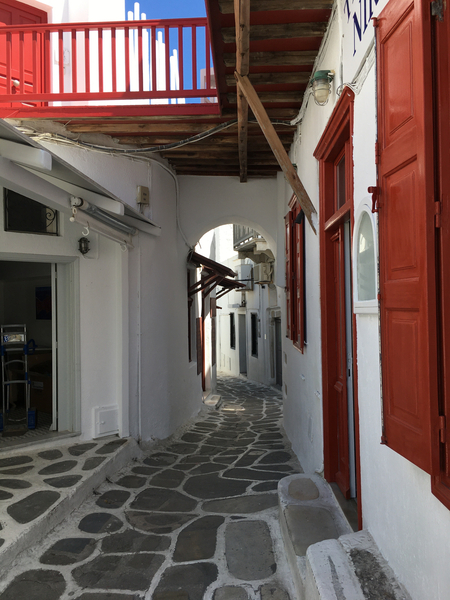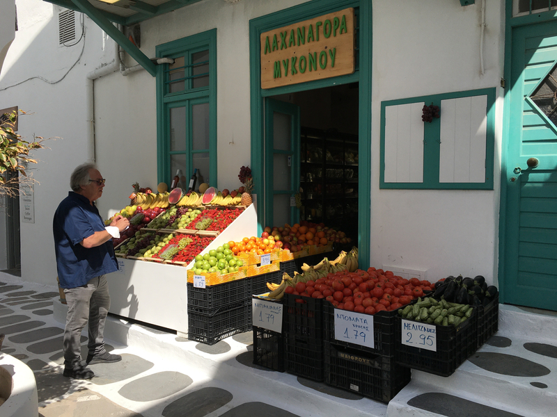 Walking is the only way to see Mykonos. Good to just slow down and enjoy the local culture and people. We stopped at a local café for lunch.