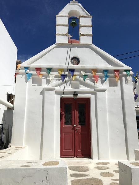 Agios Nikolaos off the harbor in the old port of Mykonos is known by locals as “Agios Nikolakis,” denoting its small size. It is located in the old port of Mykonos Town along the sea and was built in the 4th century to honor Saint Nikolaos, the patron saint of fisherman.