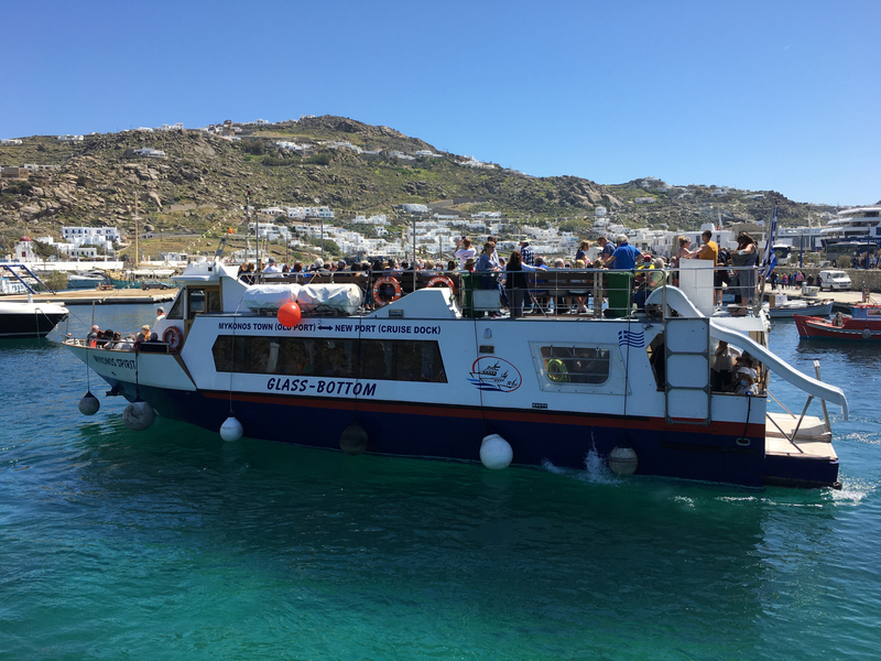 The new cruise ship port in Mykonos, also nicknamed “Island of the Winds” is situated about 2 km north of the charming, vibrant old town known locally as Chora or Mykonos Town. Yes, it is possible to walk and do Mykonos on your own from the cruise ship, but expect a 30-40 minute walk. It is more pleasant to hop on the sea bus and take in the views of the bay while it takes you into the Old Town. The Mykonos SeaBus operates a regular service from the New Port in Tourlos to the old port of Mykonos Town (Chora).
