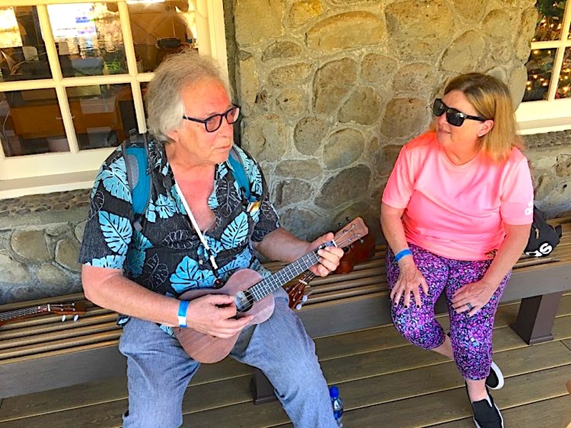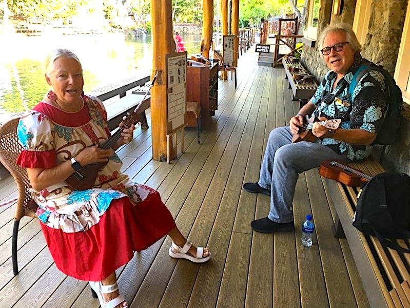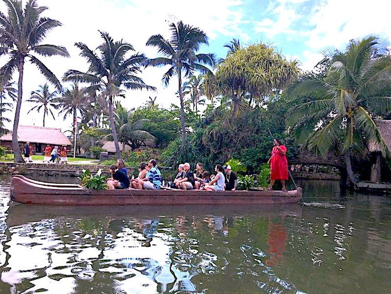 Our O’ahu port of call day was completely taken up by a cruise ship tour visit to the Polynesian Cultural Center up on the northeast coast. A full day package sets you back about $200 per person, which includes drive, visits of the exhibits, dinner and evening show. Be prepared to do some real walking, because this park covers 8 Pacific Island nations with their own villages and cultural centers, designed inside a web of ponds and canals. We visited all of them, participated in many of the cultural activities, canoed on the canals and even got a lesson in playing the Ukulele, which instrument was apparently brought to the Hawaiian Islands by Portuguese fishermen in the 19th century.