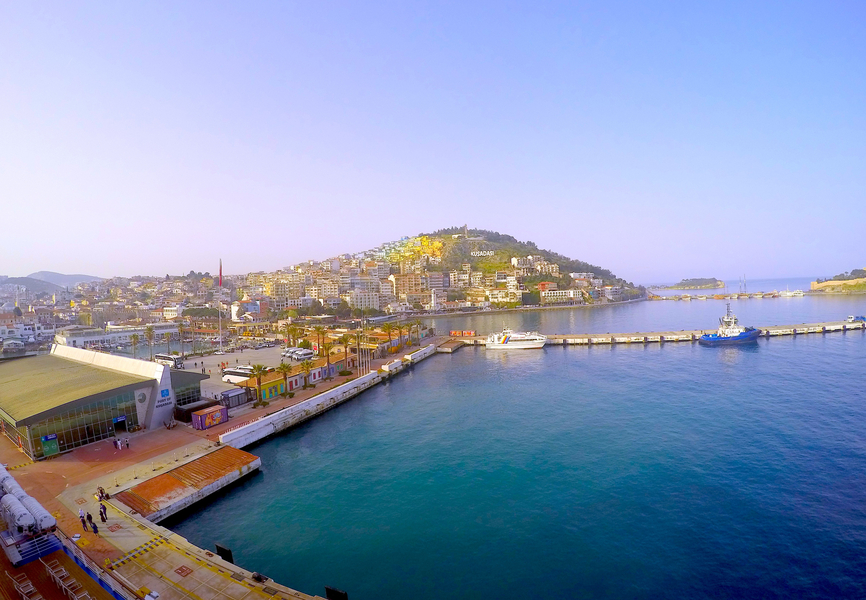 Kuşadası is the third largest port in Turkey and as a cruise ship port I welcomes 400-500 ships per year. The city however deserves a two week destination visit, because of its magnificent beaches, unparalleled shopping, great hotels, splendid nightlife and some of the best spellbinding archeological finds anywhere in the world..