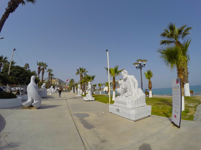 Our own day turned more inward. We first walked the magnificent waterfront with its numerous statues all the way down to a small open air market center. Then we had a great Turkish lunch at a restaurant on the Waterfront boulevard for maybe $10 FOR THE TWO OF US and then we walked into some shopping streets and conversed with shop-owners and locals. It was nice to hear they had good things to say about their local government and how they actively supported tourism.