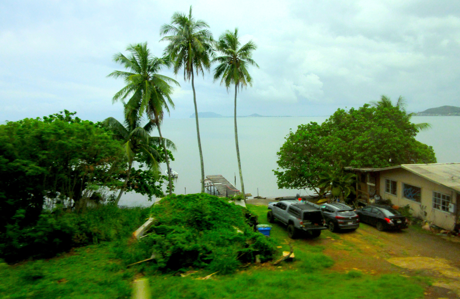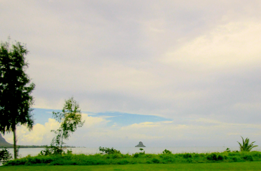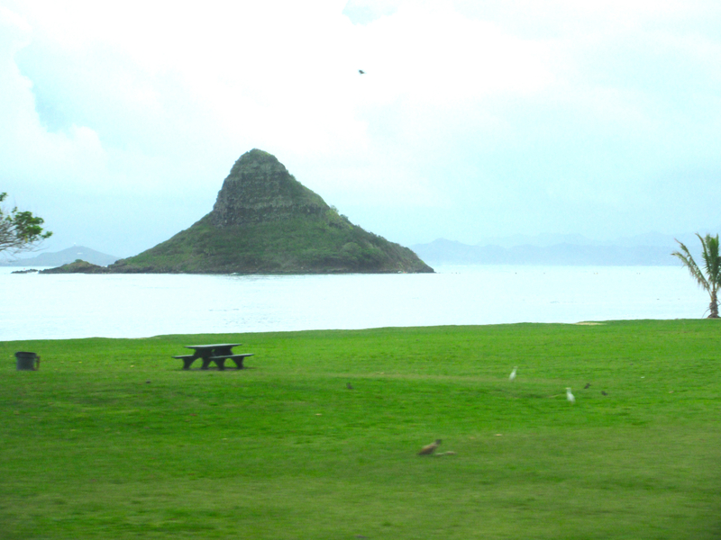 Our bus trip to the Polynesian Culture Center took us through Honolulu’s Waikiki beach past China Man’s Hat island into the rain forest. Han noticed that the former 4-lane Interstate Highway 1 had changed to Interstate H1 covering 27 miles on Oahu ? Apparently nobody in government has yet to realize that an Interstate Highway on an island in the middle of the Pacific is a pretty ignorant statement.