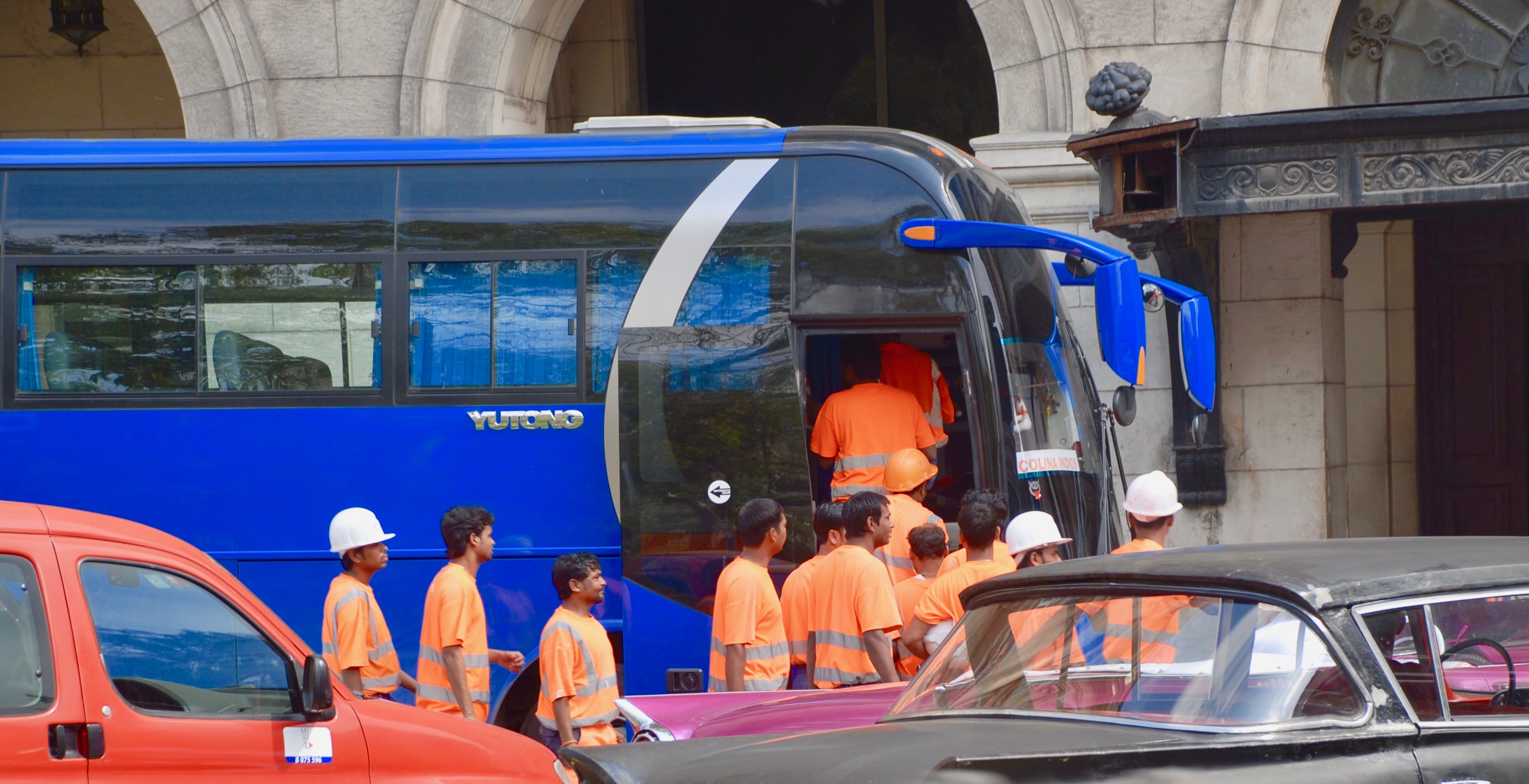 One of the more unusual sights for me today were hundreds of workers, dressed in orange jumpsuits, filing out of a fenced and gated complex, climbing onto multiple buses and I guess going “home” after working. Come to find out that these workers were flown in from Dubai to build a new HUMONGOUS hotel in the center of Havana. Not even one cuban local was hired, and I have to wonder how can that be allowed? It seems a little underhanded at best. To consider that Cuban workers get roughly 30.00 CUC per month and the Indian workers are being paid upwards of $1500.00 per month. I will be one person who will not be visiting their hotel. Okay, maybe to take a pee break, but that is all.