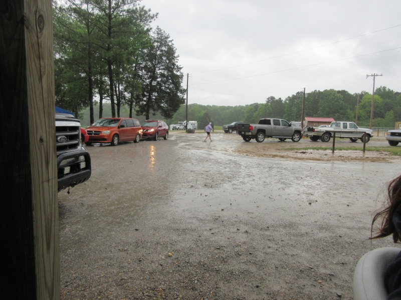 tornado sirens went off. My eyes about bugged out of my head. Most storm systems don’t faze me terribly, but tornados will turn me into a quivering mess. We started walking towards the shelter, with ears covered because the sound was deafening. Then the announcement went off and said to take cover immediately. Well, I look over and my defiant sweet daughter was standing under an open pavilion and just waved at me. I called her and told her to get to the shelter in a stern mom voice. She is 39, so she kinda laughed but ended up joining us to placate me. I was fine with that. There were riders still out on the trail and it was pouring buckets of rain. (everyone showed up safe and sound).