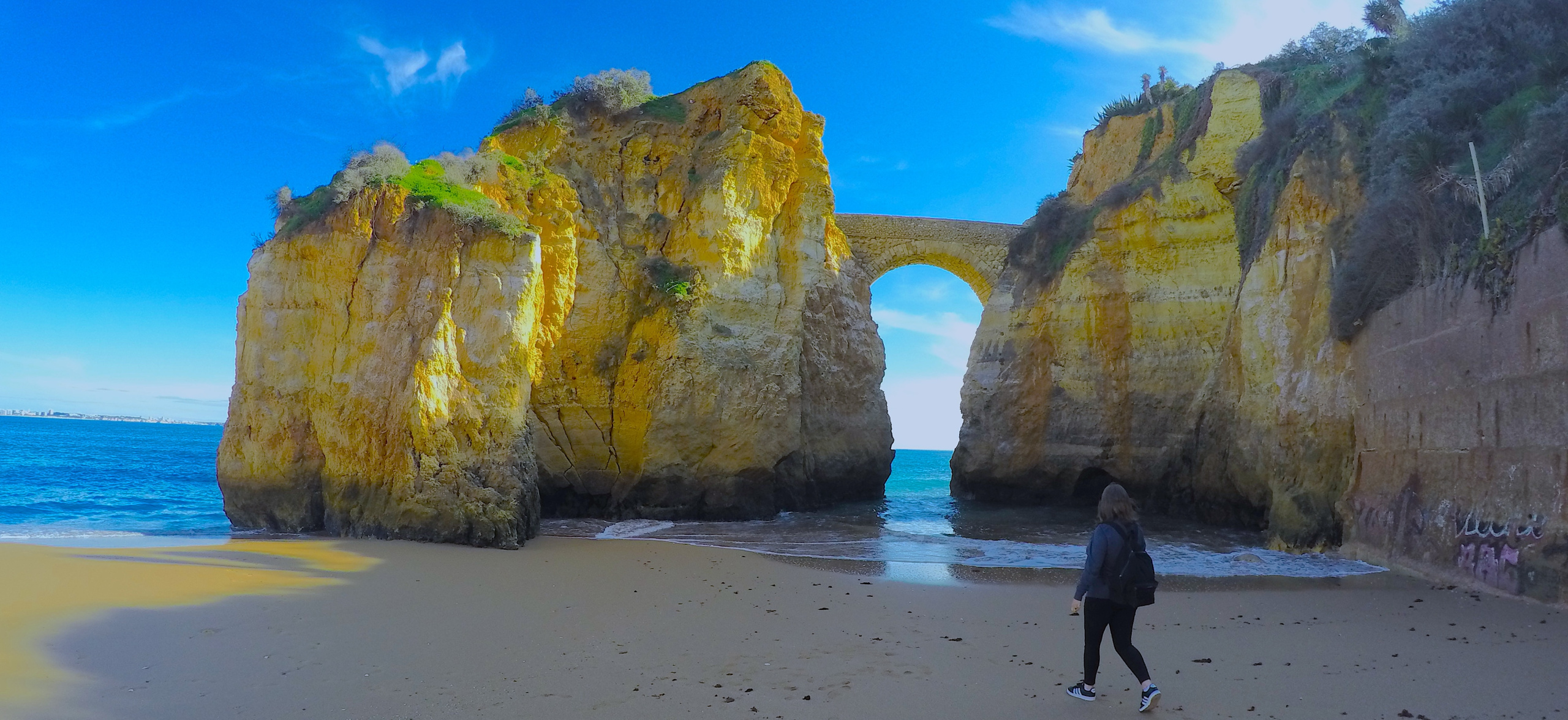 TJ admiring the beach rock formations
