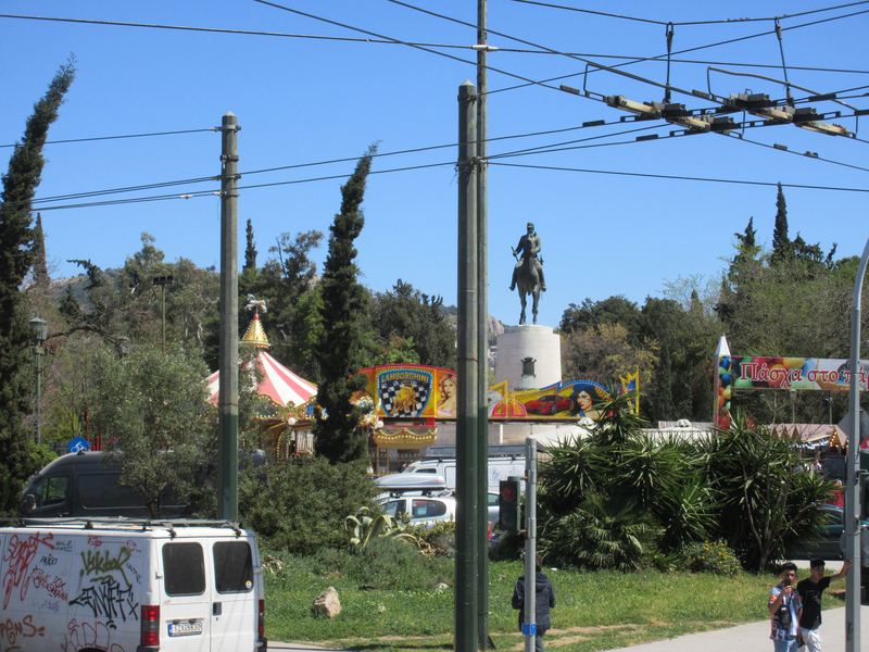 The next morning after a nice hotel breakfast we walked into a beautiful sunny day right to the marble monument of Melina Mercouri, which we had found the evening before. This beautiful monument is placed along the busy roadside on Vasilisis Amalias Avenue, surrounded by a small garden bed, across the road to Hadrian’s Arch. Han had seen it as we stood at the traffic lights looking for where to go on the hop on – hop off.