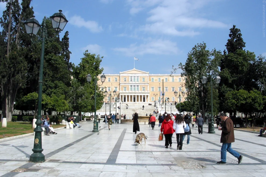 - Starting at Syntagma Square (Constitution Square) from where Ermou Street, the most important shopping street in Athens starts and goes all the w. The pedestrianized street leads all the way west past Monastiraki Square.