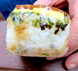Once done with our daily “work” we strolled the streets and tried some of the weirder food options available. In Maui, as on the other Hawaiian Islands, you can find Spam in various forms, including musubi, Spam-flavored Hamakua Macadamia Nuts, and Spam-flavored saimin. Musubi is a popular dish made with rice, seaweed, and Spam, and can be found at street corner carts. Well TJ found the cart and had to try one, which inevitably ended up in my face, after she took ONE bite.