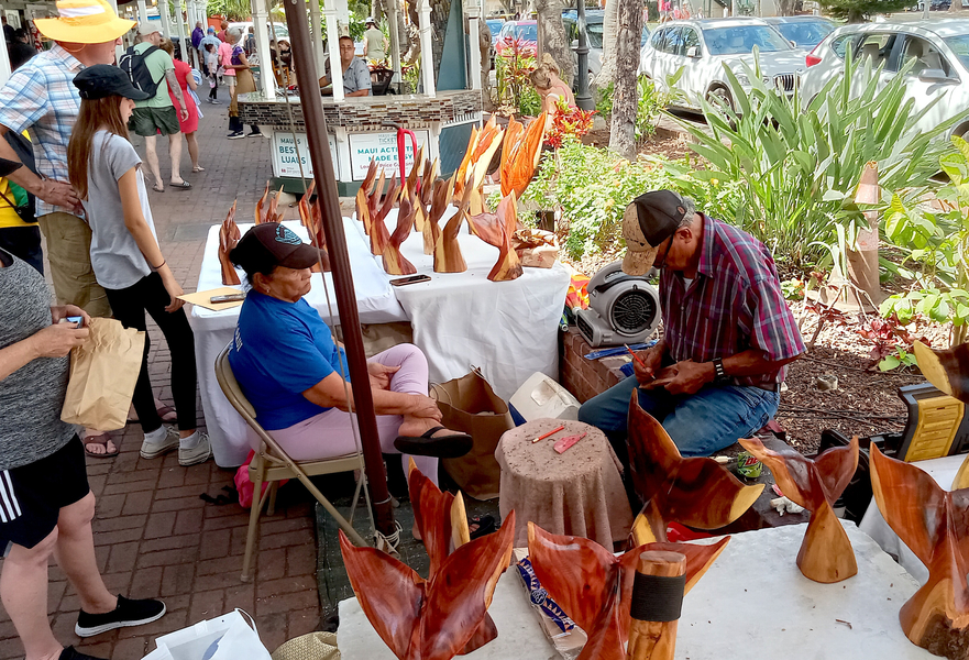 Walked past “The Fleetwood” in a tranquility induced rhythm and ended up at a local artists’ Tiki shop. He was apparently popular with quite a few people =at his booth, as we were waiting for him to cut and carve a personal Tiki for us. He even signed it for us.