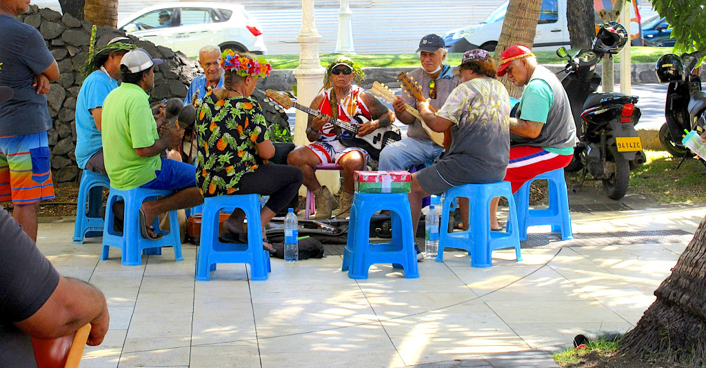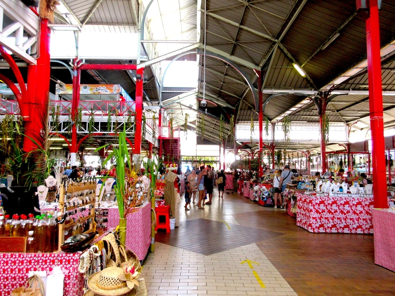 The Market is just a block off of the main waterfront road and is well worth the visit as it is teeming with stalls purveying everything from fresh fish, fruits and vegetables to cooked delights for sale. In addition to cheap T-shirts, one is exposed to island crafts featuring woven hats, shopping bags, carved wooden objets d’art, ukuleles, wrist bands and other assorted handicrafts. Just to walk through this huge complex and listening to the bander in French and Polynesian Creole is an experience. One will absorb the full flavor of Tahiti here while listening to a local street band strumming away on ukuleles and tapping the beat on bongos. Lots of vendors with clothing, fruit, pearls, wood carvings, etc. Very nice people, no pressure to buy, and very friendly.