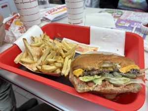 made the food all the better to share it with others. Han had the Double-Double & fries meal and I had the Single Burger with Animal Fries. I shared some of my fries with Han and he admitted that the food was worth the wait this time. Now I am sitting here craving more In-N-Out, but we are too far away. I will sign off for now so I can go and pout a smidgen.