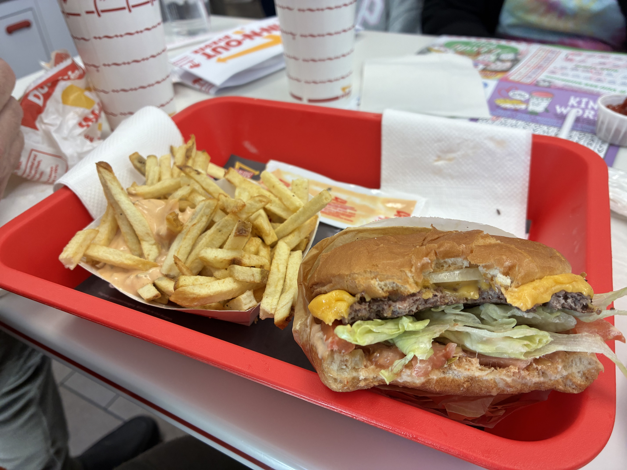 “In-N-Out” Partly due to reminiscing of childhood visits, to wanting to try the “animal fries” that the cast on